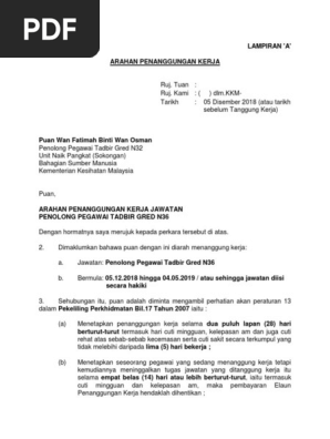 Jawatan Ditanggung Gred XXX c. Thanks guys in advance. Arahan penanggungan kerja seseorang pegawai hendaklah dibuat secara bertulis oleh Ketua Jabatan.